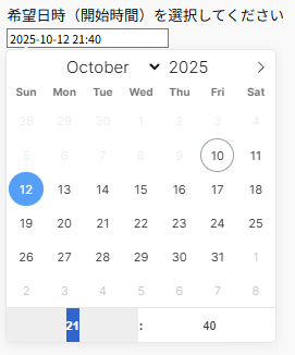 配信者の専用ページに移動したら「希望日時」のテキストボックスをクリックして通話の開始時間を入力してね!