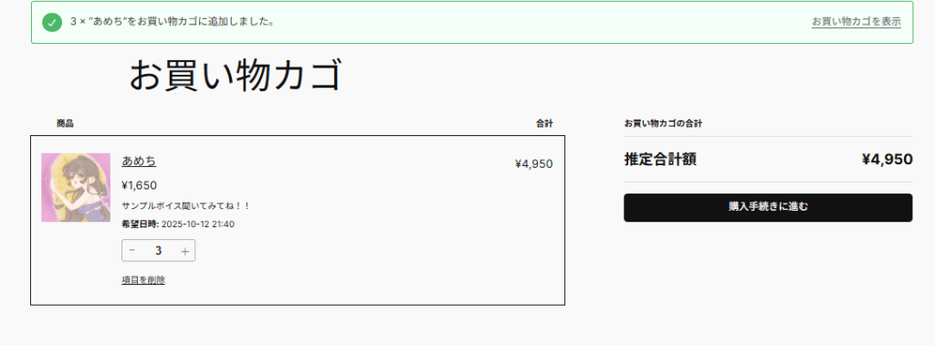 買い物籠が追加されたら内容を確認して「購入手続きに進む」をクリック。